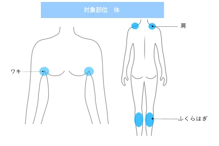 額(16単位/¥4,800)、眉間(12単位/¥7,200)、目の下(8単位/¥2,400)、鼻根(8単位/¥2,400)、小鼻(8単位/¥2,400)、バニーライン(8単位/¥2,400)、あご(8単位/¥2,400)、エラ(40単位/¥12,000)、エラ(80単位/¥24,000)、下腿(240単位/¥72,000)、脇ショート(60単位/¥18,000)、脇トール(80単位/¥24,000)、脇グランデ(100単位/¥30,000)、脇ベンティ(120単位/¥36,000)、肩こり通常(32単位/¥9,600)、肩こり倍量(64単位/¥19,200)