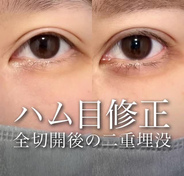 また、今回は裏ハムラ(クマ取り)も同時に行っています。 二重幅の調整と併せて、目の下の膨らみと凹みを解消することで、目元全体の印象が明るく整いました。
