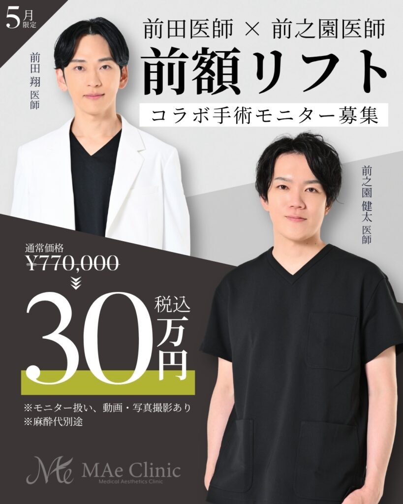 当院の前田 翔 医師と前之園 健太 医師の2名体制で行う、「前額リフト」のコラボ手術モニターを募集いたします。