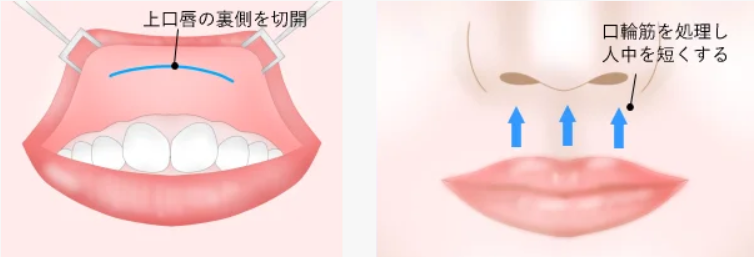 人中短縮・皮膚に傷のつかない人中短縮(裏人中短縮)・拡大人中短縮・外側人中短縮・口角挙上など、口元の手術を幅広く手がけています。