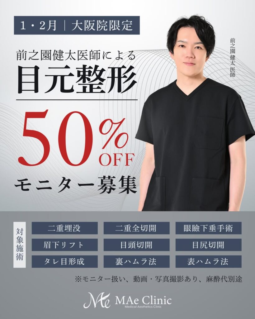 【前之園健太 医師】目元整形 全メニュー50%OFFモニター募集|大阪院限定[1〜2月限定]
