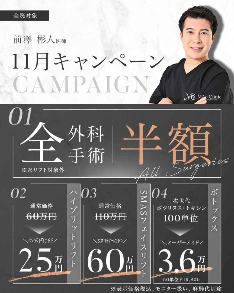 【前澤彬人 医師】全外科手術“半額”キャンペーン[11月限定]