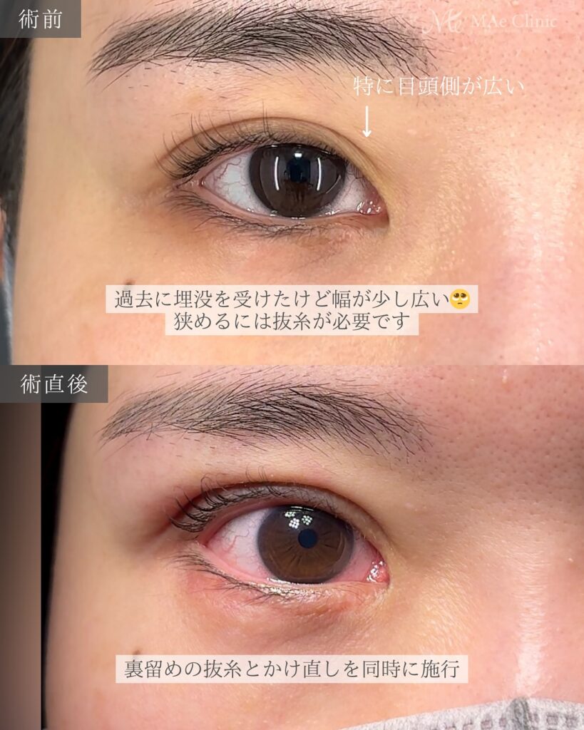 抜糸直後のまぶたは、癒着が解除された“素の状態”に近く、どの層に糸を通すかを正確に判断しやすいタイミングです。