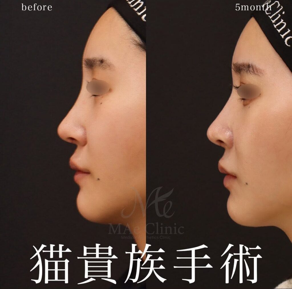 鼻中隔延長(肋軟骨)+鼻尖形成+鼻尖軟骨移植+隆鼻術(肋軟骨)+猫貴族手術(肋軟骨)+脂肪注入(額) 前田翔医師症例