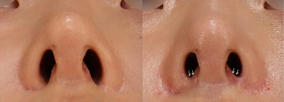 鼻の中心部の支えが失われることで、相対的に外側が強調されるためです。
