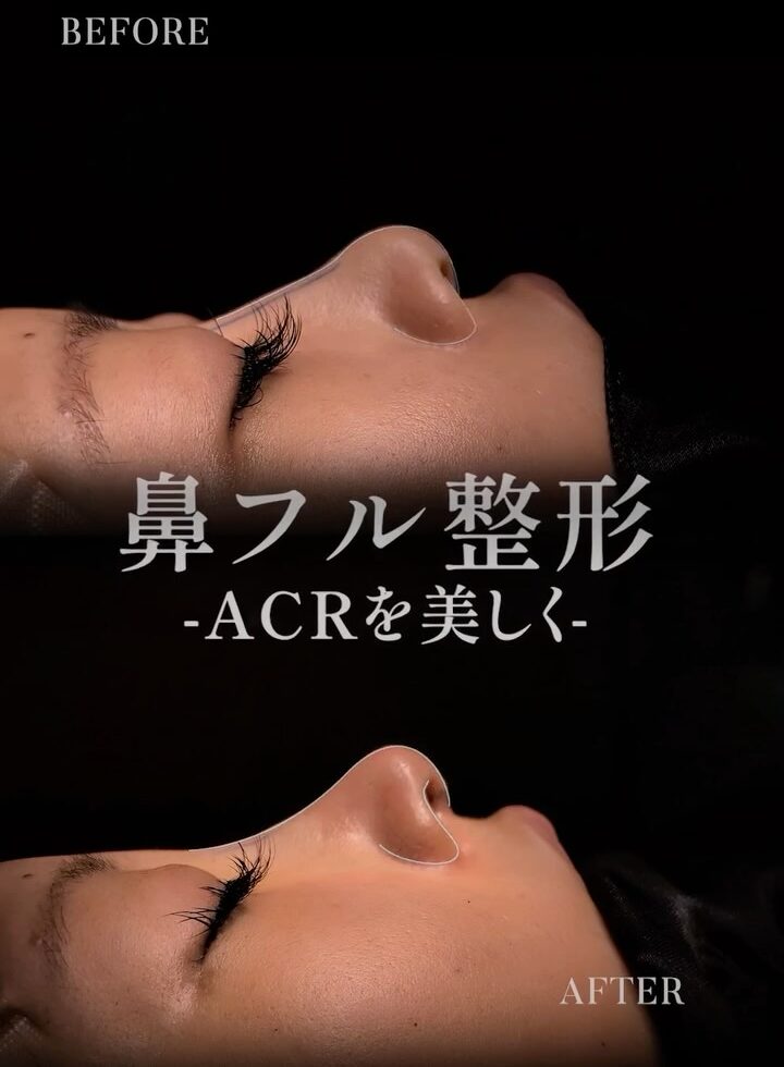 鼻の手術において、単に高くするだけでは美しい鼻にはなりません。 僕が最もこだわっているのは、ACR(Alar-Columellar Relationship)と呼ばれる「小鼻(鼻翼)と鼻柱の位置関係」のバランスです。