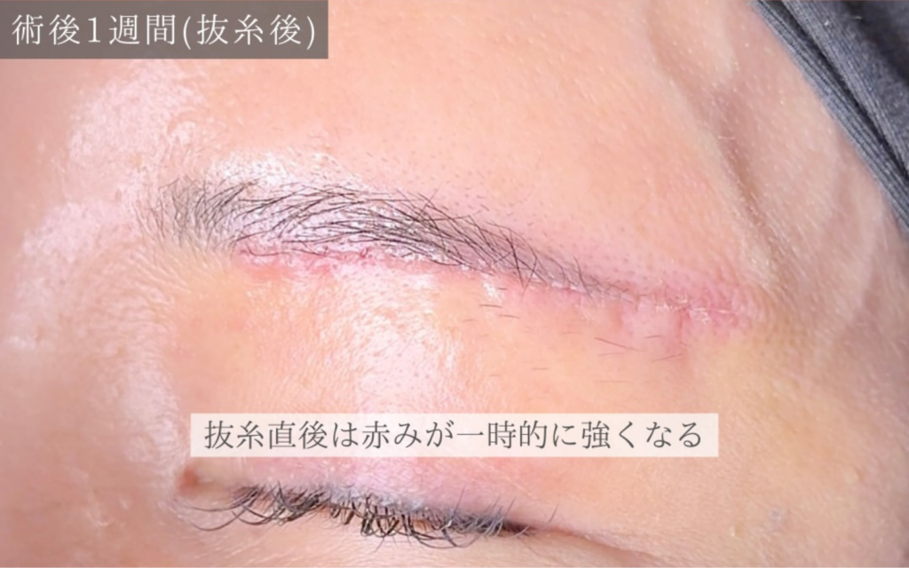 抜糸直後は、一時的に赤みが強く見えることがありますが、正常な経過であり、数日で落ち着いていきます。