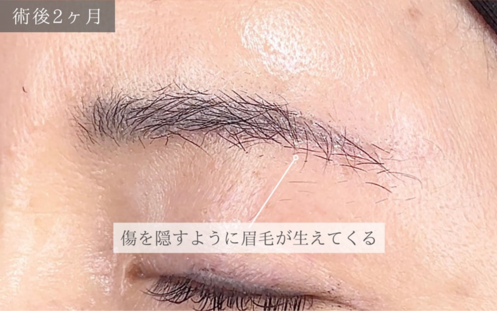デザイン通り、眉毛が傷の上に重なるように生えてくるため、ノーメイクの状態でも「どこを切ったか分からない」という状態に近づいていきます。