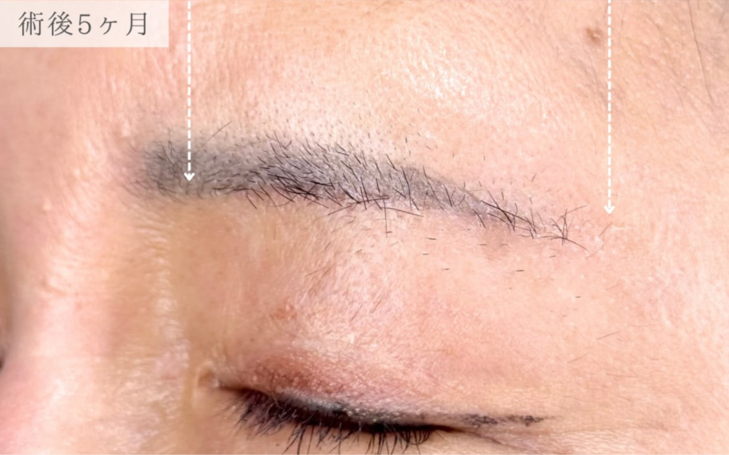 眉下リフトの傷は、術直後こそ不安に感じるかもしれませんが、時間の経過とともに確実に馴染んでいきます。今回ご紹介した症例のように、5ヶ月後には眉毛のラインに溶け込み、目立たない状態まで改善するのが一般的です。