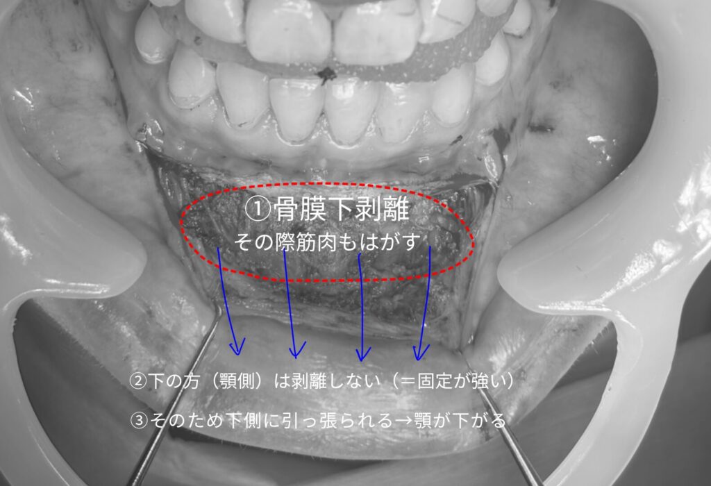 顎先は“上へ支える”のが鍵。骨膜ごと上方に持ち上げると形が安定する