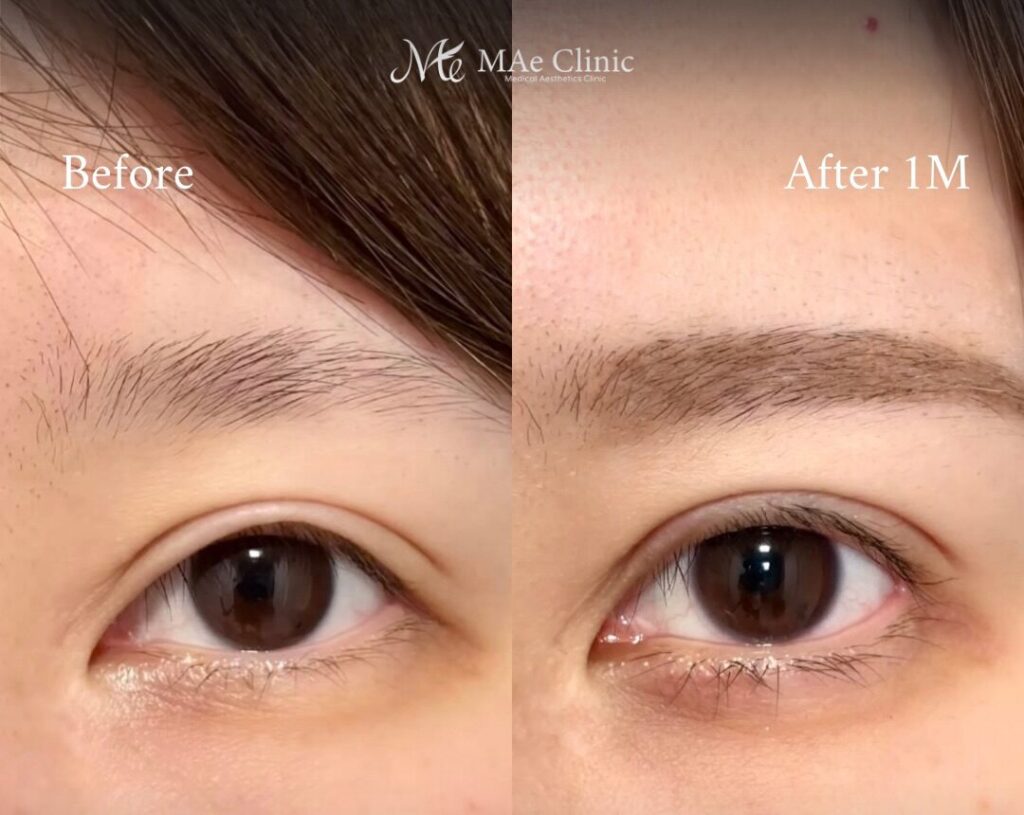 Afterでは、被さりが改善し、まつ毛の生え際が見えることで、二重ラインと目元全体が整理されています。