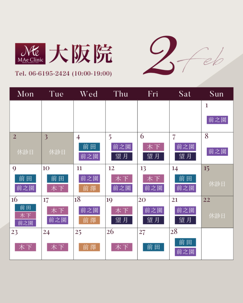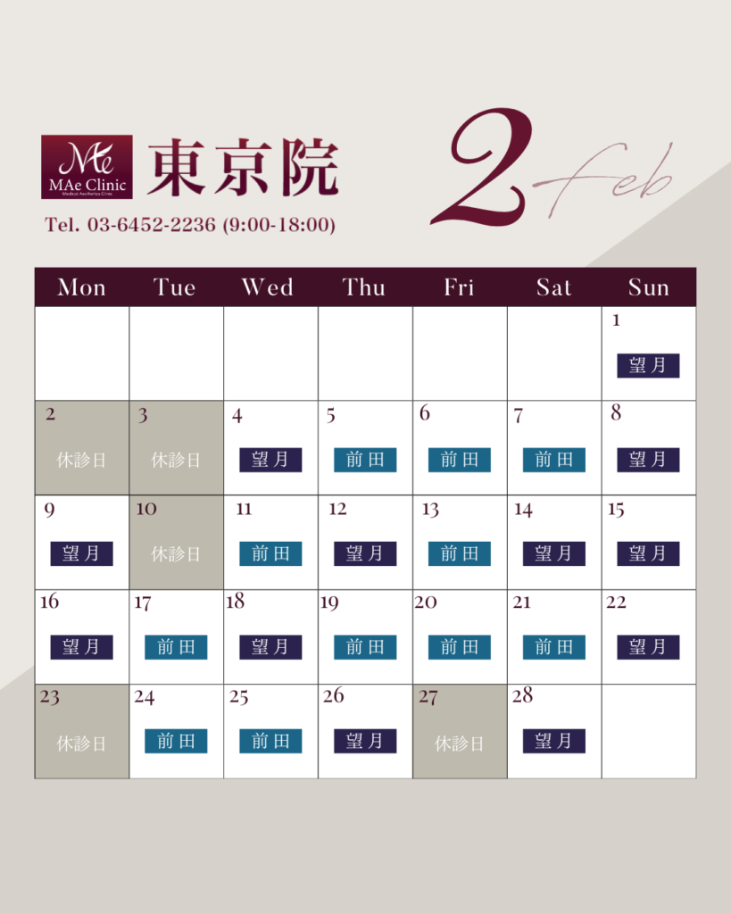 カウンセリング、皮膚科施術、術後診察、モニター撮影、オンライン診療等の項目がありますので、患者さまのご都合が良い⽇時にご予約をお願いいたします。