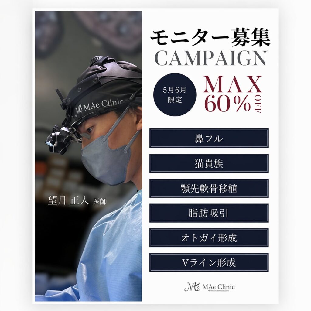 【望月正人 医師】最大60%OFF!鼻・輪郭・脂肪吸引モニター募集[5月・6月限定]