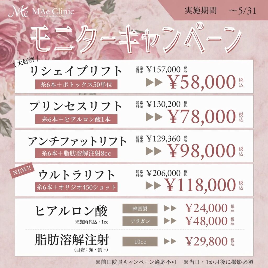 【両院対象】5月モニターキャンペーン|糸リフト複合メニュー・注入治療