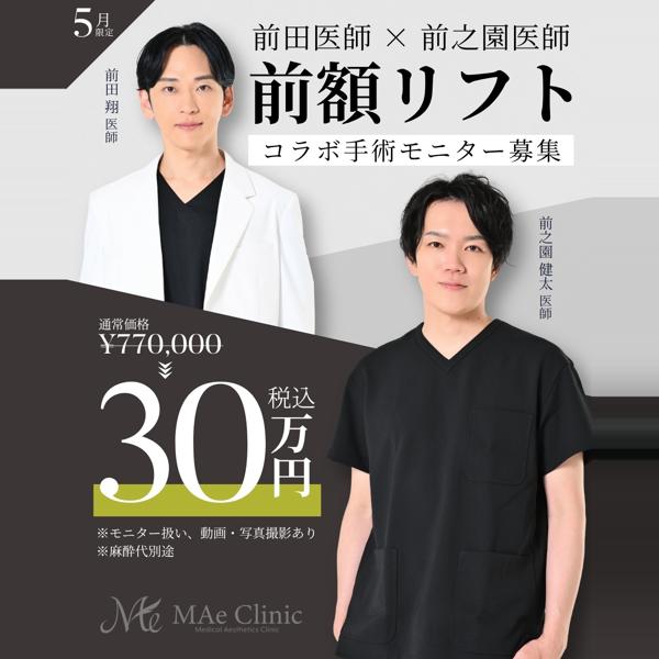 【前田医師×前之園医師】前額リフト コラボ手術モニター募集|両院対象[5月限定]