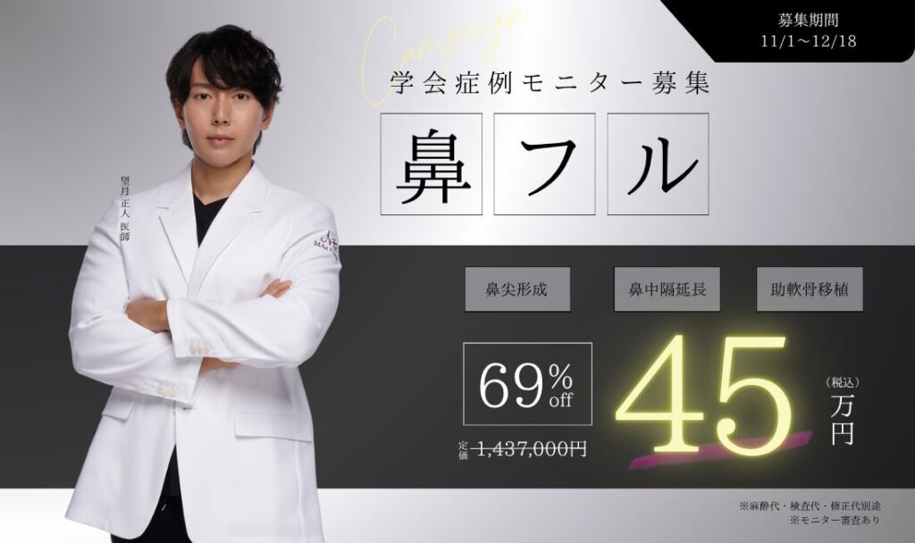 【望月正人 医師】鼻整形・猫貴族手術 学会症例モニター募集[11〜12月限定]